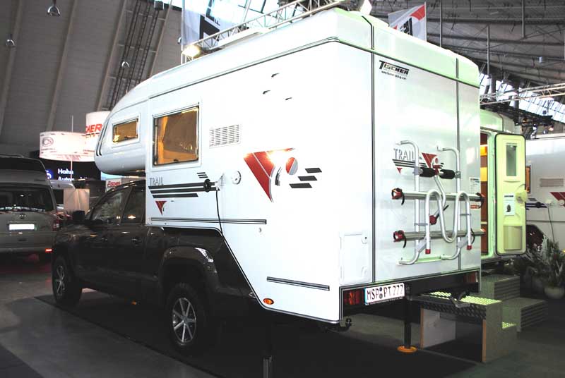 Tischer Freizeitfahrzeuge: VW Amarok DoKa – Gelängt für die Familien-Kabine14.01.2013 Einmal kräftig strecken, bitte: Wohnkabinen-Hersteller Tischer aus dem fränkischen Kreuzwertheim hat das Chassis des VW Amarok Doppelkabiner verlängern lassen und ihm die Trail bzw. Box 260S auf die Ladefäche geschnallt. Damit ist der große VW Pickup familienreisetauglich. Der VW Amarok hat sich mittlerweile als Platzhirsch im Pickup-Revier etabliert und wäre gar als Reisemobil mit Wohnkabine prädestiniert. Kein Problem eigentlich – zumindest beim Einzelkabiner, er hat eine ausreichend lange Ladefläche für ein großes Huckepack-Appartement. Damit ist er allerdings nur für urlaubende Paare nutzbar. Die Doppelkabiner-Variante wäre dagegen familientauglich, aber für eine entsprechend geräumige Aufsetzkabine ist dann wiederum die Ladefläche zu kurz. Tischer hat sich des Dilemmas angenommen: Eine Werkstatt in Holland verlängert den Amarok-Viertürer, indem direkt hinter der Doppelkabine ein 31 Zentimeter langes Zwischenstück in den Rahmen eingesetzt wird. Die Ladefläche verlängert sich damit von 1.555 auf 1.865 Millimeter.