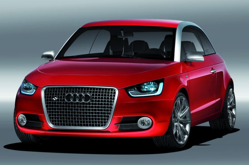 Einfach und schlüssig, wie aus einem Guss präsentiert sich die Linienführung des Konzeptfahrzeugs. Geradezu klassisch für ein Fahrzeug mit den vier Ringen erscheint die Grundproportion von hohem Fahrzeugkörper und flachem Fenster­band, eingefasst von einer coupéhaften Dachpartie. Deren Silhouette modellieren zwei markante und robuste Aluminium-Bögen, die A- und C-Säule entlang des oberen Fensterabschlusses miteinander verbinden und die Dynamik des bullig-kompakten Fahrzeugkörpers betonen. Der Heckabschluss erfolgt durch einen in der Heckscheibe integrierten Spoiler.