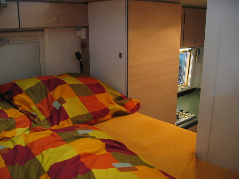 Procab – Der Laubfrosch - Seite 2Dieses Basisfahrzeug hat Jung mit einer Teilintegrierten-Wohnkabine aus 60 Millimeter dicken Gfk-Sandwichplatten und fast zehn Zentimeter starker Bodenplatte mit einem einlaminiertem Stahlleiterrahmen verbunden. Wie üblich in der Branche hat er alle Türen und Klappen selbst und aus dem gleichen Material wie die Kabine gefertigt. Diebstahlsichere, innenliegende Edelstahl-Scharnierbänder sind ebenso Standard wie stabile Schließzylinder mit Staubschutzkappen und Einschlüsselsystem. Die selbst gefertigten, doppelt verglasten und einwurfsicheren Fenster sind bündig in die Wände eingelassen und mit Moskito- sowie Verdunklungsrollos ausgestattet. Hochwertige, begeh- und verriegelbare Dachluken aus dem Yachtbau lassen Licht von oben in Wohnraum und Bad. Über dem Bett gestattet eine ausstellbare, feste Klappe den Blick auf den nächtlichen Sternenhimmel oder tagsüber den Ausstieg auf das Dach, etwa als Kameraplattform.