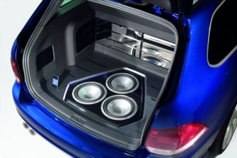 mit R-Logo und lackierten Griffmulden geprägt. An Bord des Golf Variant RaVe 270 befindet sich zudem eine Volkswagen Soundanlage der Extraklasse mit einer Musikleistung von 1400 Watt. Die Basis dieser einmaligen Anlage bildet das neue Radio-Navigationssystem RNS 510. Über drei mächtige Endstufen werden insgesamt 13 Lautsprecher versorgt. Ein 880 Watt starker Subwoofer sowie zwei weitere 250-Watt-Subwoofer in Chrom sind dabei für die deutlich „spürbaren" Töne zuständig.