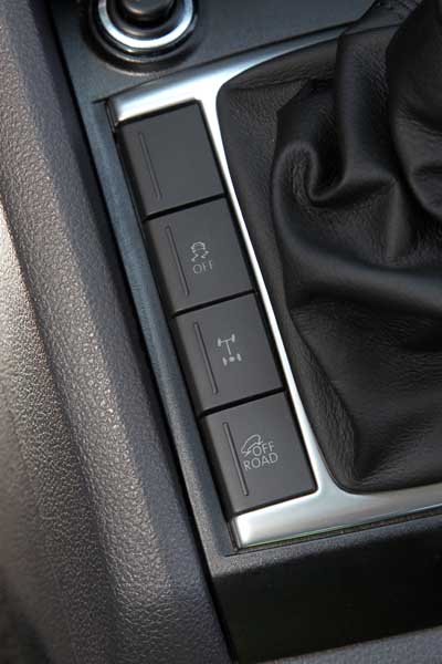 Der vordere Böschungswinkel ist mit 28 Grad noch im Rahmen, der hintere fällt mit exakt 23,6 Grad jedoch etwas flach aus. Der Rampenwinkel bewegt sich mit 23 Grad im Klassenrahmen. Los geht‘s: Den Vorderradantrieb per Fingerdruck auf den Knopf neben dem Schalthebel zugeschaltet, die Geländeuntersetzung auf gleiche Weise eingelegt. Das Fahrwerk ächzt, der Vorderbau taucht schräg ab, ein Hinterrad balanciert in der Luft. Im Leerlauf schraddelt der Amarok durch die Verschränkunspassage. Ebenso souverän wie hier absolviert der Deutsch-Argentinier das Gefälle mittels der aktivierten Bergabfahrhilfe, die das Tempo (unterhalb von 30 km/h) durch sensiblen Bremseingriff konstant hält.