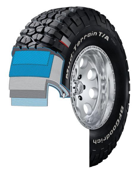 Der Mud Terrain T/A  „KM2“ verfügt über drei unterschiedliche Technologien, die ihm eine außergewöhnlich hohe Robustheit und Widerstandsfähigkeit verleihen sollen: Massive Profilstollen auf der Reifenflanke verbessern nicht nur den Grip, sondern schützen die empfindliche Flanke auch bei der Berührung mit scharfkantigen Steinen. Die „kerb- sowie schlagzähe“ Gummimischung reduziert das Risiko von Reifenschäden weiter und die verstärkten Cordwicklungen auf der Reifenschulter und -flanke sind um 33 Prozent robuster als beim Vorgängermodell.
