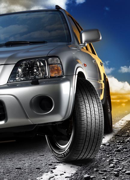 Continental: Neue Sommerreifen für Allrad-Modelle11.03.2009 Continental hat seine Palette an Sommerreifen für Geländewagen, SUV und 4x4-Pkw noch einmal deutlich erweitert. Auf dem Genfer Automobilsalon stellte der deutsche Hersteller neue Dimensionen vor und bietet damit insgesamt 38 unterschiedliche Profile für alle Arten von Allrad-Fahrzeugen. Die Reifen decken den Bereich von 15 bis 24 Zoll Felgendurchmesser und Querschnitten zwischen 85 und 25 Prozent ab – mit Geschwindigkeitsfreigaben bis zu 300 km/h. Kurze Bremswege, schnelle Lenkansprache und hohe Laufrichtungs- sowie Kurvenstabilität, das sind die herausragenden Eigenschaften, mit denen der deutsche Reifenhersteller Continental für seine fünf, speziell auf Allrad-Fahrzeuge konzipierten Reifentypen wirbt. Für besonders leistungsstarke, allradgetriebene Wagen wie BMW X5, X6, Porsche Cayenne oder VW Touareg empfehlen die Hannoveraner den ContiCrossContact UHP, der für besondere Umbereifungsansprüche auch in 23- bis 25 Zoll-Versionen erhältlich. Damit deckt er einen Großteil des Umrüst- und Tuningbedarfs in den Geschwindigkeitsklassen V, W, Y und Z (oberhalb von 210 km/h bis 300 km/h) ab. Ausgezeichnete Traktion auf der Straße und in leichtem Gelände soll der Conti4x4Contact bieten: Die gegeneinander versetzten Profilklötze sollen nur äußerst geringe Abrollgeräusche erzeugen, seine breiten längs und quer angeordneten Profilrillen die Aquaplaninggefahr deutlich reduzieren. Der Conti4x4Contact eignet sich besonders zur Bereifung kompakter und mittelschwerer SUV und Crossover. Eine ähnliche Konstruktion weist der Conti4x4SportContact auf, der mit seinem asymmetrischen Profil und einem kompakten Außenschulterbereich für die stärker motorisierten und schwereren SUV-Modelle gedacht ist. Porsche liefert damit den Cayenne aus.