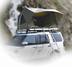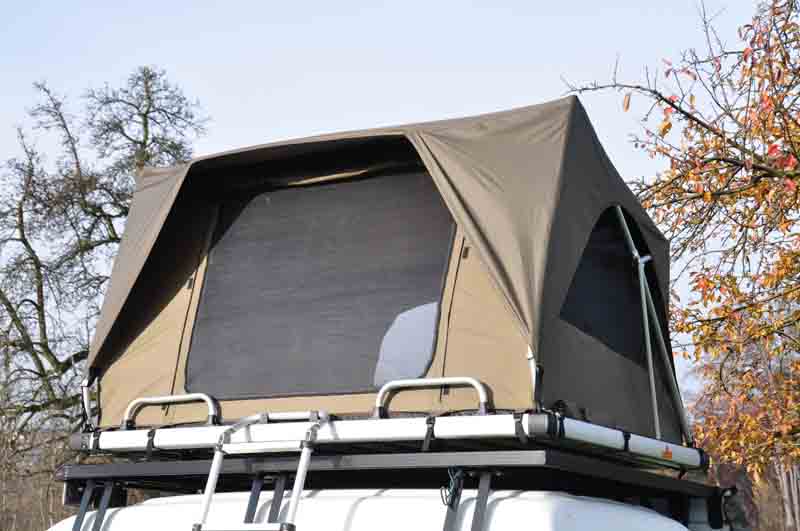Das Aufklappen eines auf dem Dach des Geländewagens montierten Zeltes ist allzu oft eine mühsame Angelegenheit. „Muss ja nicht sein“, dachte sich Urs Zweifel, Inhaber des Schweizer Ausrüstungsshops XP-edition: „Das geht doch auch elektrisch“. Und so bietet er pünktlich zum Frühjahr eine Dachzeltkonstruktion namens „Pathfinder“ an, bei dem sich das Aluminiumgestänge samt Zeltwänden per elektrischem Stellmotor auf Knopfdruck entfaltet.