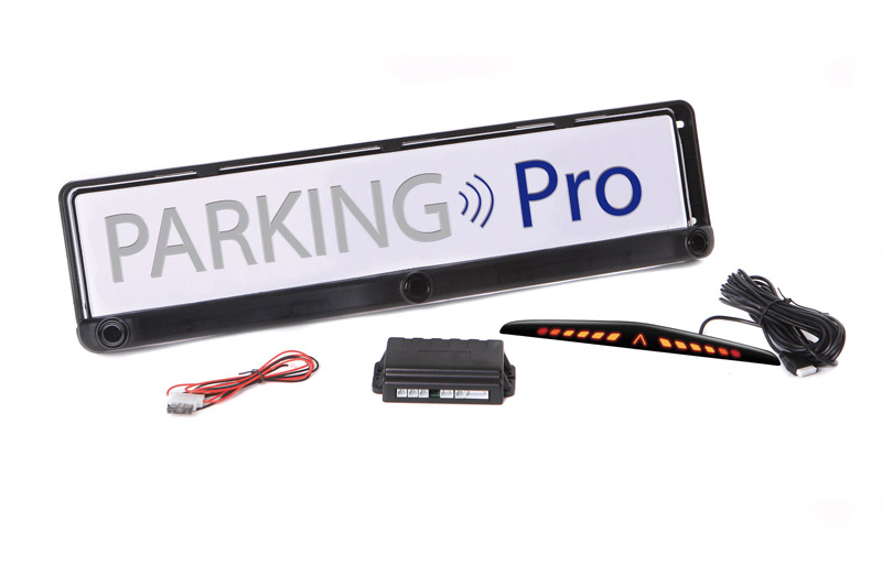 Zum Lieferumfang gehören ein Farb-LED-Display mit akustischem Signalgeber, eine Kennzeichenhalterung mit drei Parksensoren, ein Steuergerät, Installationsmaterial und Kabel sowie eine deutschsprachige Bedienungsanleitung. Die Spannungsversorgung erfolgt über das 12V Bordnetz. Das „Parking Pro System“ ist für 79.- Euro im Kfz-Zubehörhandel zu haben.