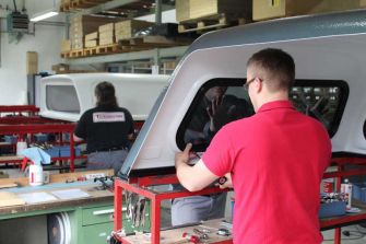 Was aber auch kein einfacher Vorgang ist: Scharniere und Schlösser wollen ebenso penibel angepasst werden wie die Dichtungen. Und die handwerkliche Präzisionsarbeit geht weiter: Je nach Modell und Kundenwunsch müssen zunächst die Aussparungen für Front- und Seitenscheiben gesägt werden. Dafür gibt’s zwar Schablonen. Aber die exakte Anpassung an die Fenstergröße erfordert letztlich viel Routine und Augenmaß. Für das Einsetzen der Scheiben, allesamt aus Sicherheitsglas mit E-Prüfzeichen und je nach Bestellung als Schiebefenster oder mit Aluklappe, werden dann vier Hände benötigt.