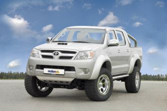 Beadlock-Felgen von delta 4x4 – Coole Schlappen für den Hilux11.02.2009 Delta 4x4 stellt den Toyota Hilux auf 18-Zoll-Räder und verpasst dem Pickup eine Höherlegung sowie Kotflügel-Verbreiterungen. Eine der auffälligsten Alufelgen für einen Geländewagen ist sicher die „Beadlock“ von Mickey Thompson, deren Design aus der amerikanischen Offroad-Racing-Szene stammt. Ihre Besonderheit: Mittels eines „Lock-Rings“ wird der Reifen auf der Felge festgeklemmt. Dieser verhindert, dass sich der Reifen bei zu hoher Belastung (und wenig Luftdruck) auf der Felge dreht. Mickey Thompson hat diese Optik für seine Felgenlinie übernommen. Bei der Beadlock dient der Ring jedoch in erster Linie als Anfahrschutz, der bei einer Beschädigung leicht ausgetauscht werden kann. Die Ringe gibt es wahlweise in schwarz, rot, gold, blau und poliert. Bei delta4x4 kostet ein Komplettradsatz Beadlock in 10x18 Zoll für den Toyota Hilux 3.950 Euro, inklusive Mickey Thompson Reifen in der Dimension 305/60-18.